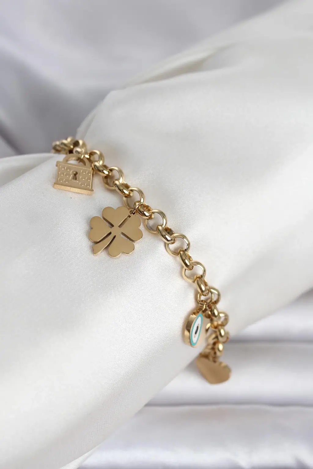 316L Çelik Gold Renk Charmlı Kadın Bileklik