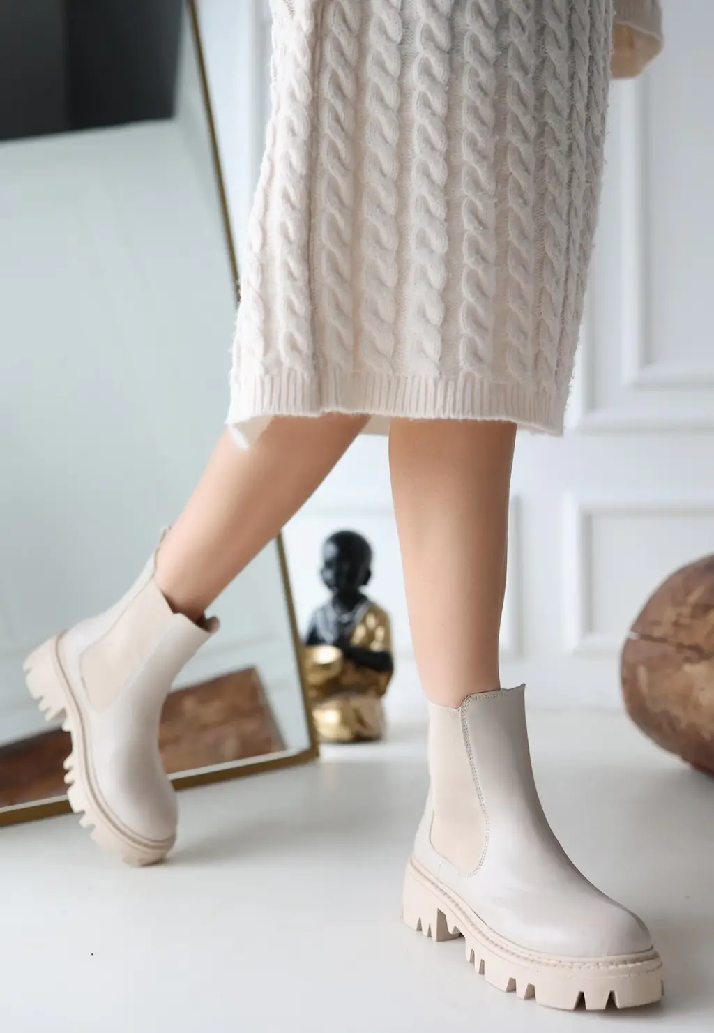 • Ninle Bej Cilt Topuklu Bot