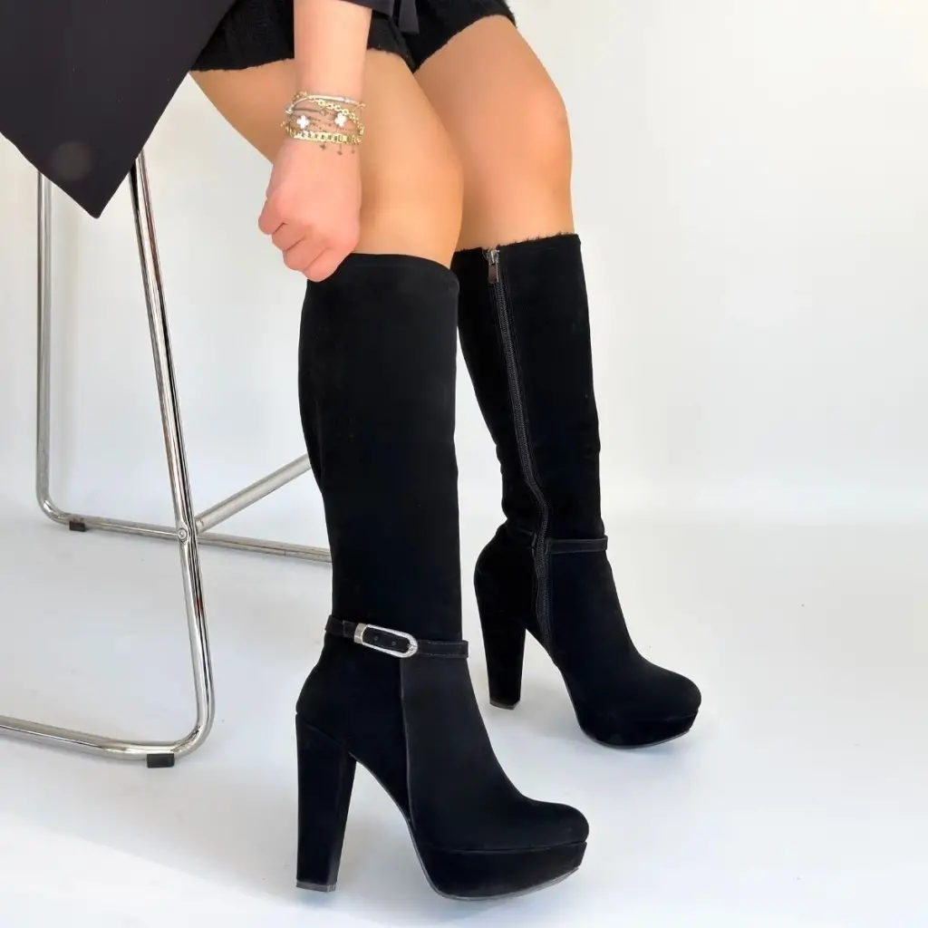 Tekja Siyah Süet Topuklu Çizme
