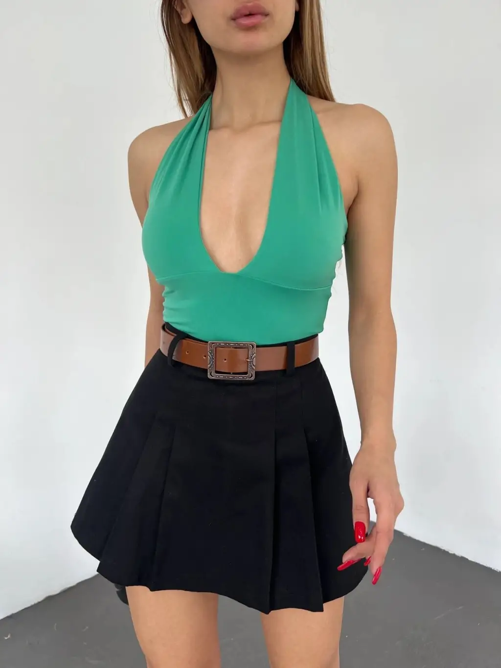 Kemerli Pileli Şort Etek - SİYAH