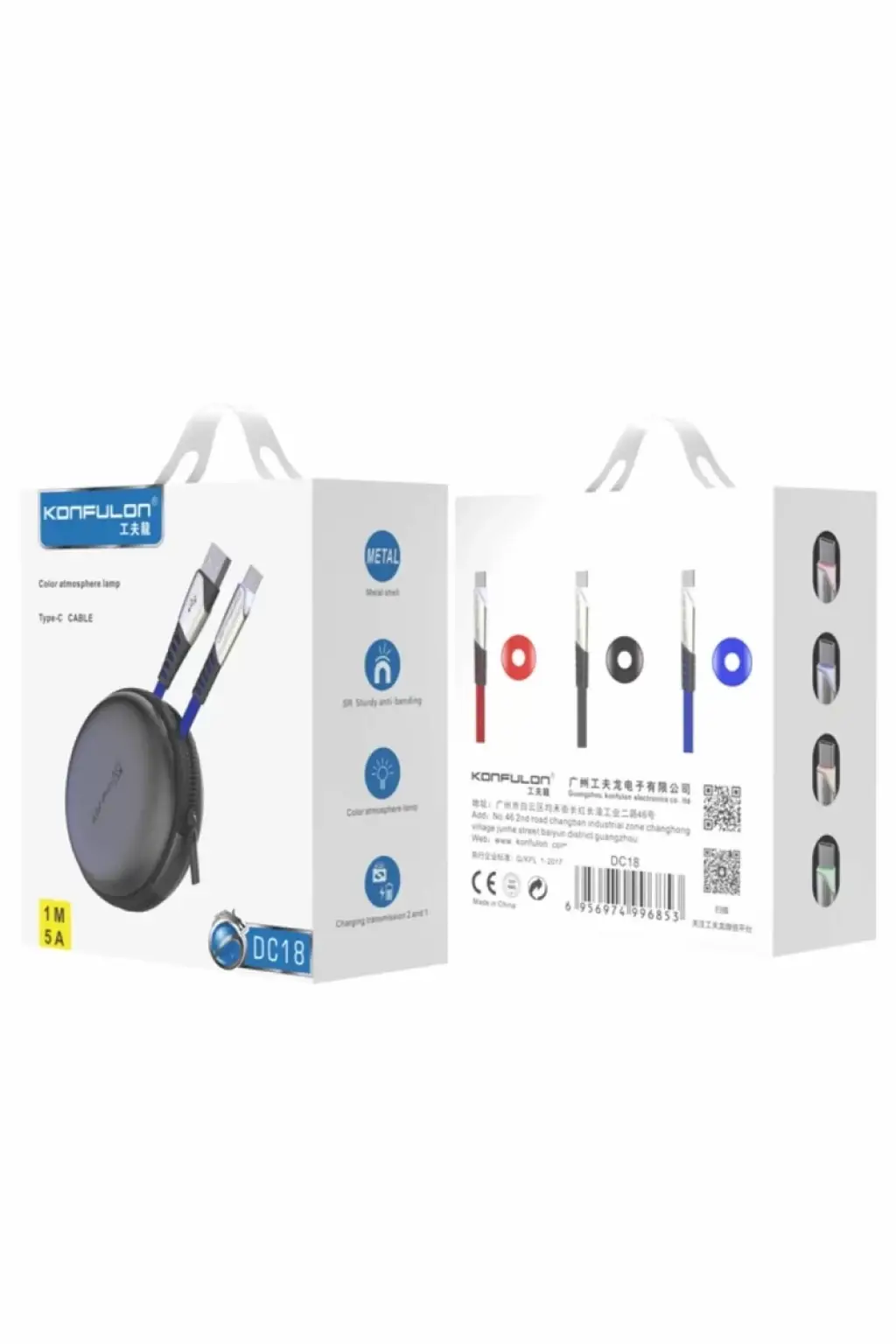 Konfulon DC18 Type-C Kablo 1M 5A - Siyah
