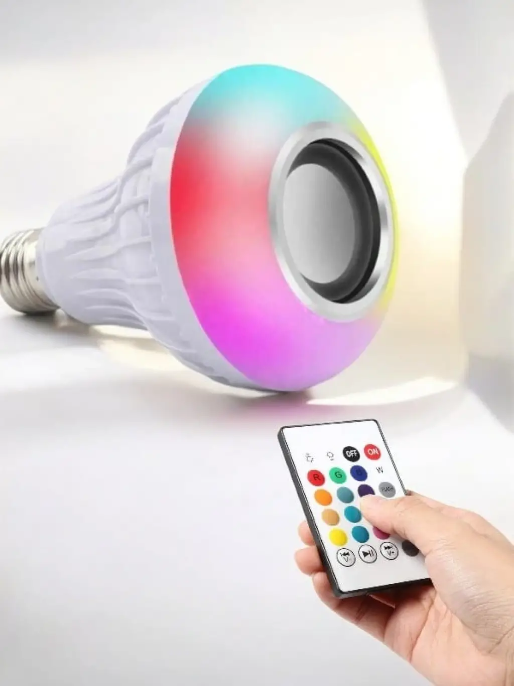 BLUETOOTH BAĞLANTILI LAMBA HOPARLÖR Bluetooth Hoparlör Ve Led Lamba Uzaktan Kumandalı Ürünün Boyutu: 13.6cm x 9.3 Voltaj: 100-240v/50-60hz Güç: 12w rms Led güç: 7w Hoparlör Güç: 3W RMS Frekans Tepkisi: 135hz 15 khz Bluetooth Görüş: 3.0 Yapılandırma Destek: A2DP Radyo Aralığı: 10m( 33ft) Led Işık Rengi: Karışık renk Lamba Tabanı: E27 Akıllı LED Ampul müzik ile ışık birleştirmek ve uyumlu mobil cihazınızdan kontrol etmenizi sağlar. Android 2.3.3 destekler. iPhone destekler bunun için IOS 7.0 ve sonraki sürümleri ile sadece QR kodunu tarayın ve uygulamayı indirin.