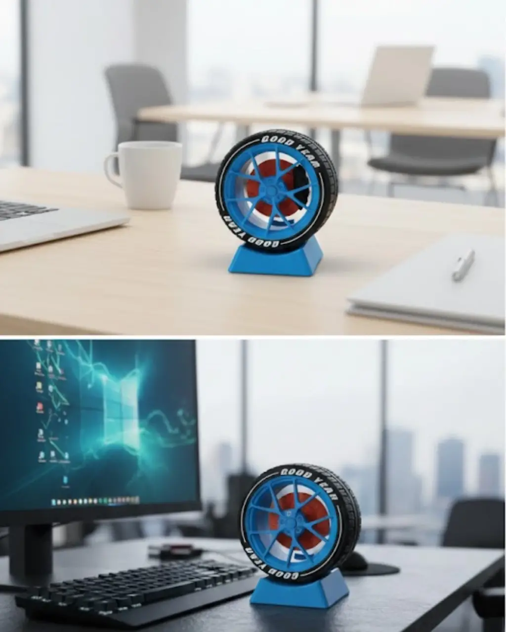 Dekoratif jant modeli, ofis masası ve çalışma alanları için tasarlanmış şık bir süs objesidir. Otomobil temalı dekor sevenler için hem estetik hem de anlamlı bir detay sunar. Masa üzerinde tek başına sergilendiğinde bile güçlü bir görsel etki yaratır. Ofiste, home office ortamında veya hediye olarak tercih edilebilir. Doğum günü, yeni iş hediyesi veya ofis açılışı için farklı ve özgün bir seçenektir.