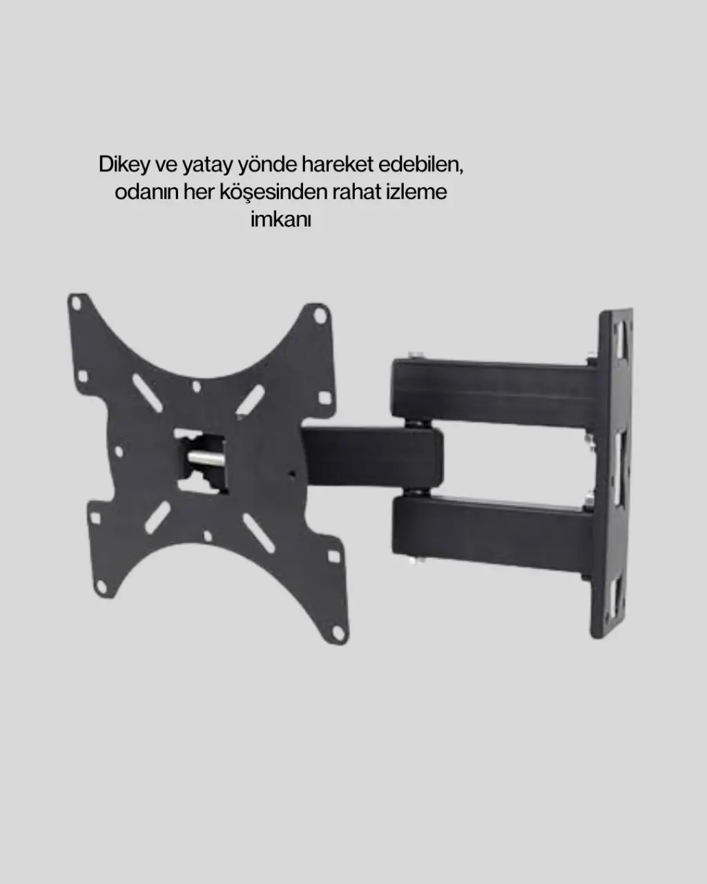 LED ve LCD televizyonlar için uyumlu olan bu duvar askı aparatı, modern dizaynı ile yaşam alanlarınıza şıklık katar. Hareketli mekanizması sayesinde televizyonunuzu farklı açılardan rahatça izleyebilirsiniz. Özellikle dar alanlarda kullanım için avantaj sağlar. Dayanıklı malzemeden üretilmiş olup uzun süreli kullanım sunar. Montaj aparatları ile birlikte gönderilir ve kullanıcıya kolay kurulum imkânı tanır.