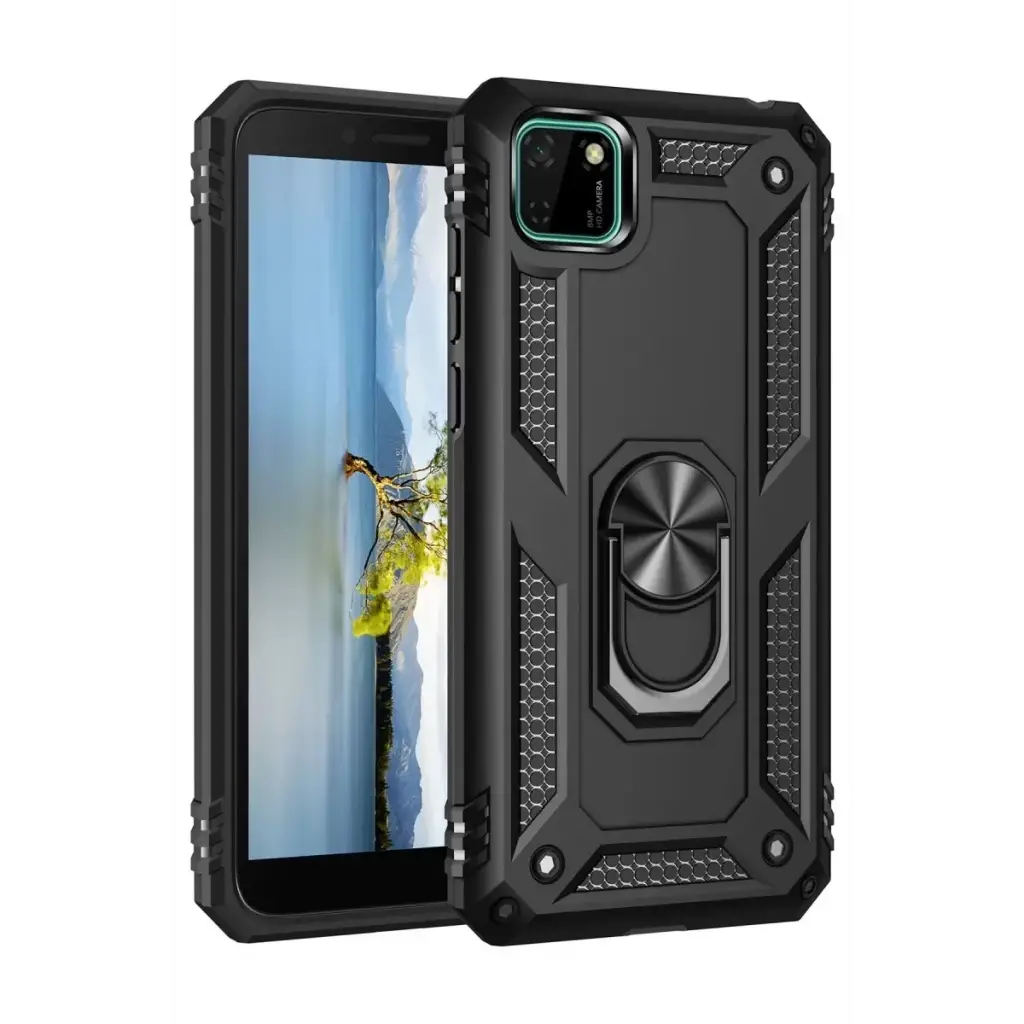 Newface Huawei Y5P Kılıf Sofya Yüzüklü Silikon Kapak - Siyah