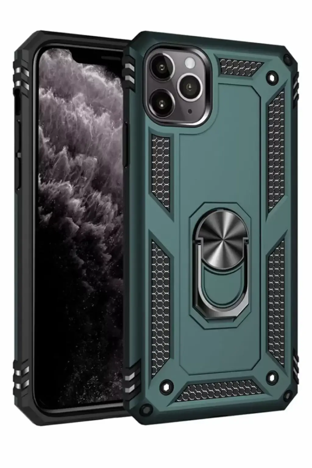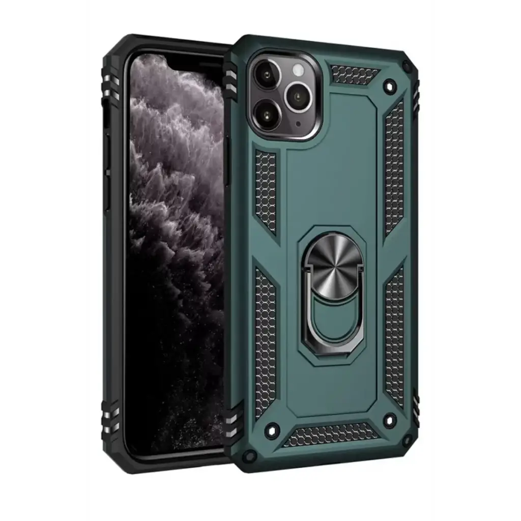 Newface Apple iPhone 11 Pro Max Kılıf Sofya Yüzüklü Silikon Kapak - Yeşil