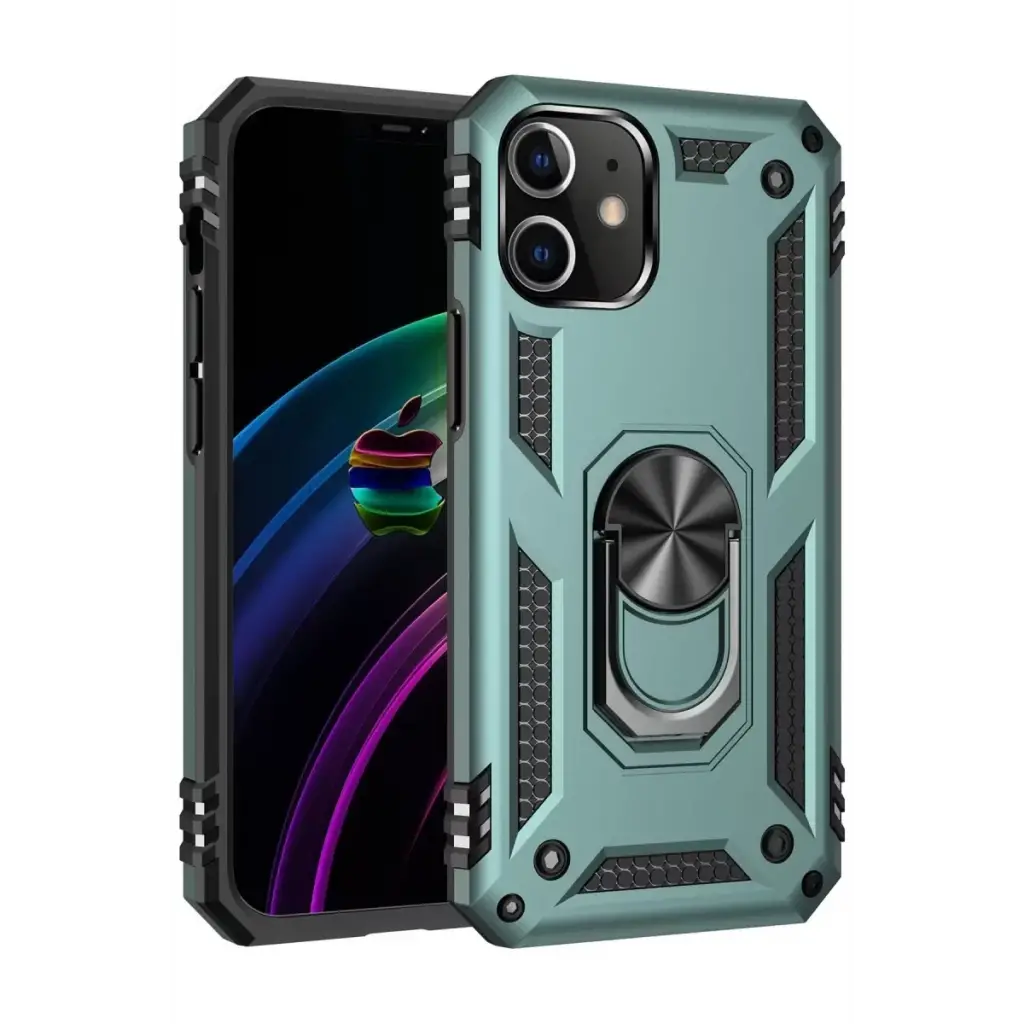 Newface Apple iPhone 12 Mini Kılıf Sofya Yüzüklü Silikon Kapak - Yeşil
