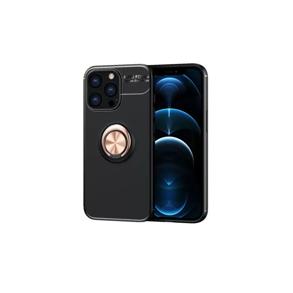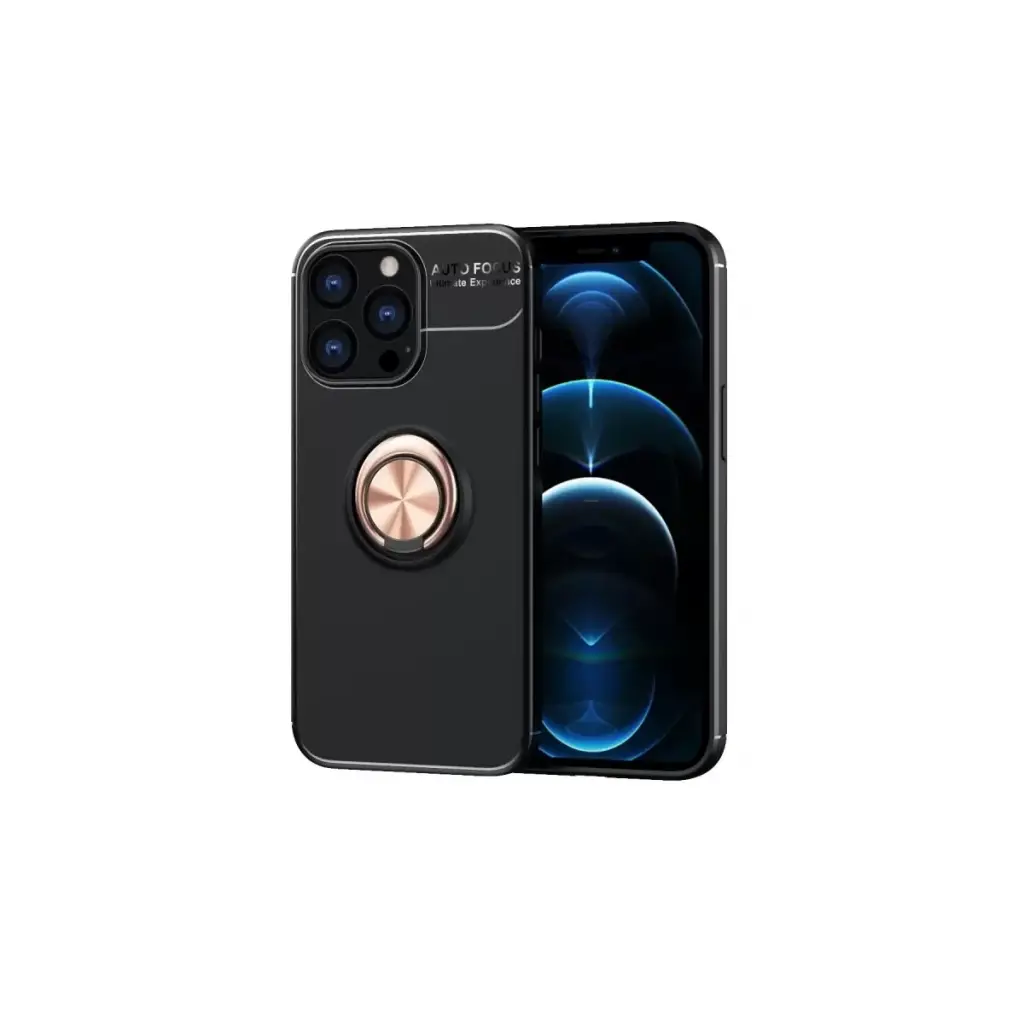 Newface Apple iPhone 13 Pro Kılıf Range Yüzüklü Silikon - Siyah-Gold