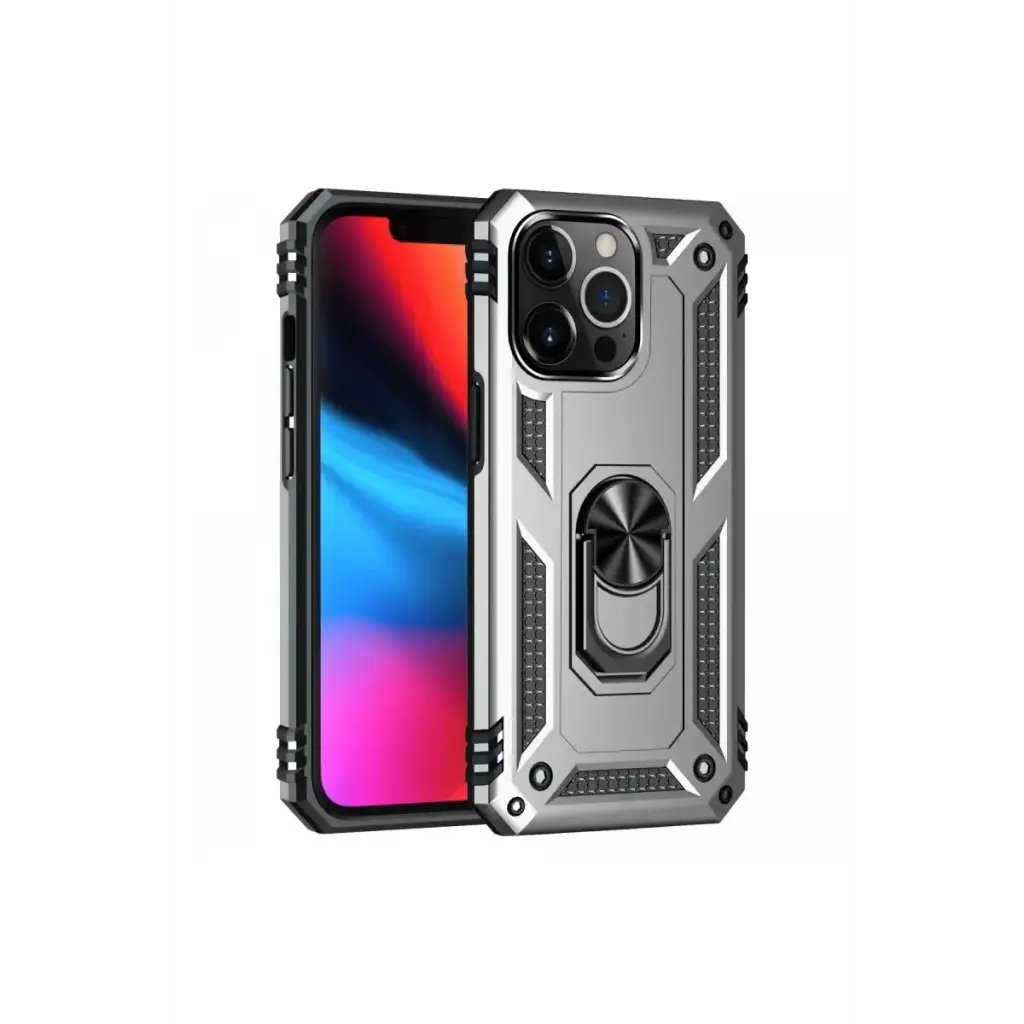 Newface Apple iPhone 13 Pro Kılıf Sofya Yüzüklü Silikon Kapak - Gümüş
