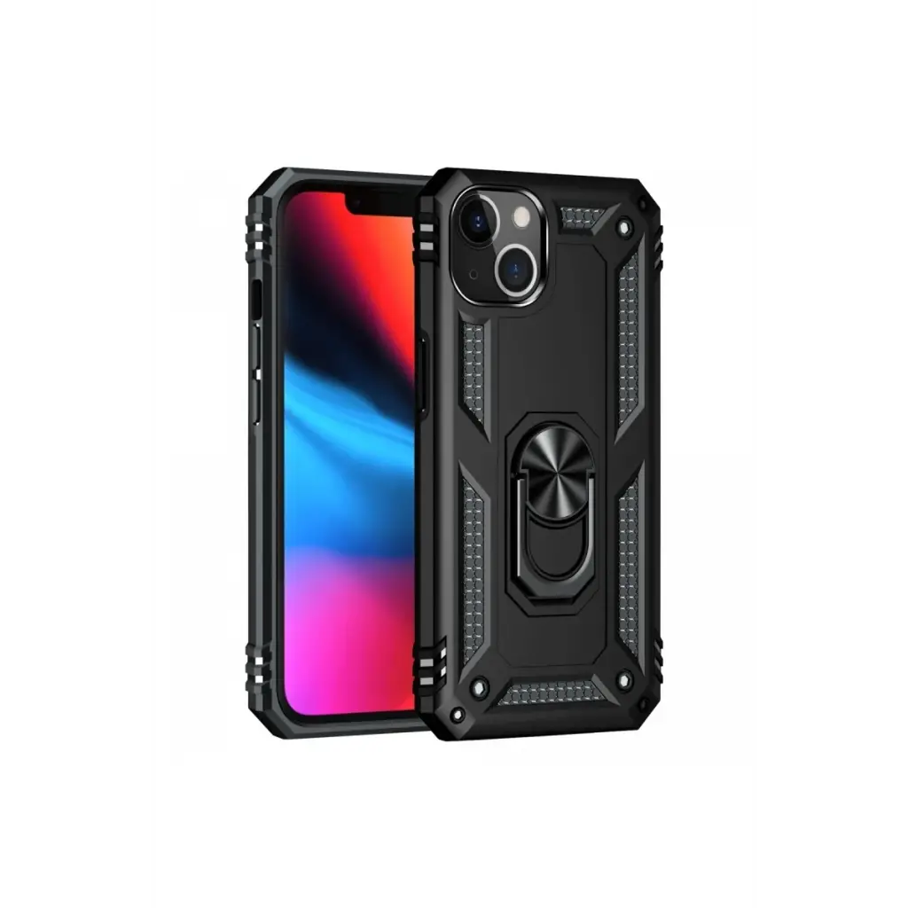 Newface iPhone 14 Plus Kılıf Sofya Yüzüklü Silikon Kapak - Siyah