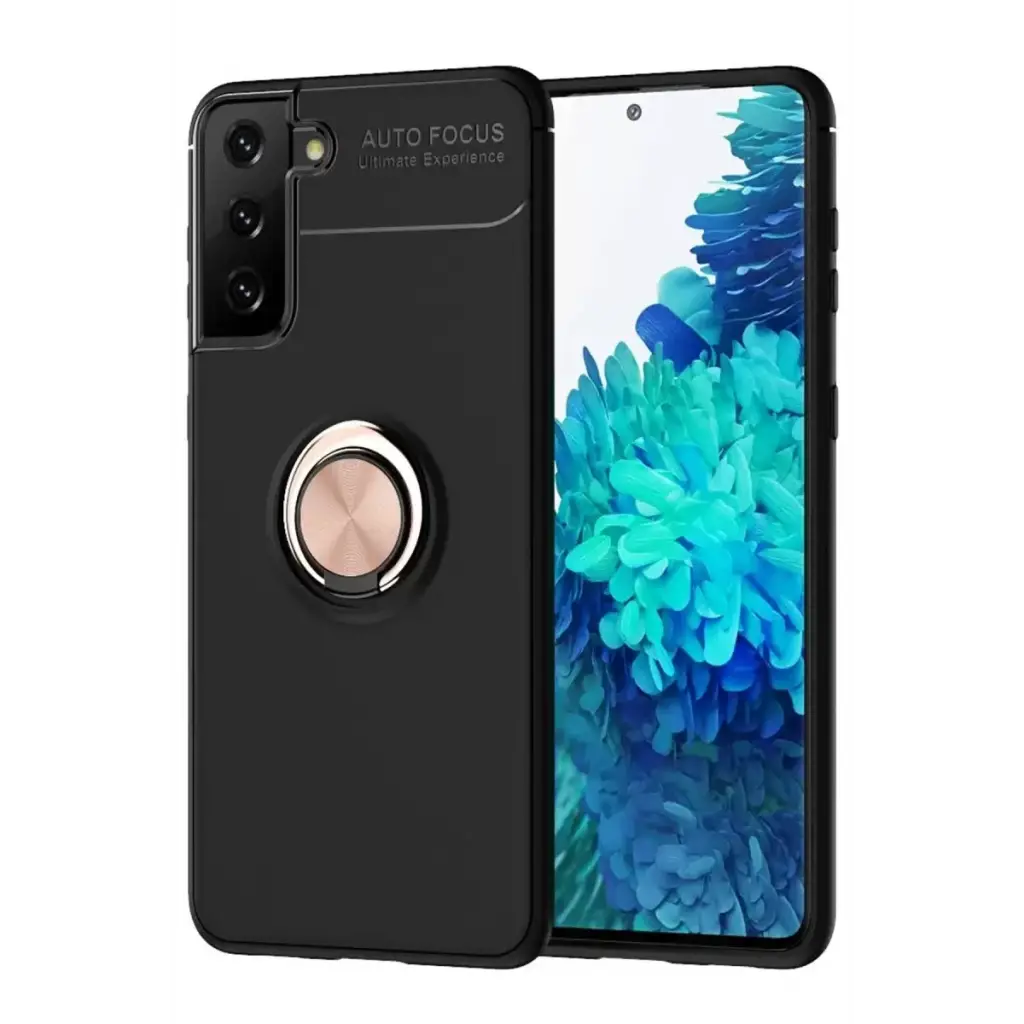 Newface Samsung Galaxy S21 Plus Kılıf Range Yüzüklü Silikon - Siyah-Gold