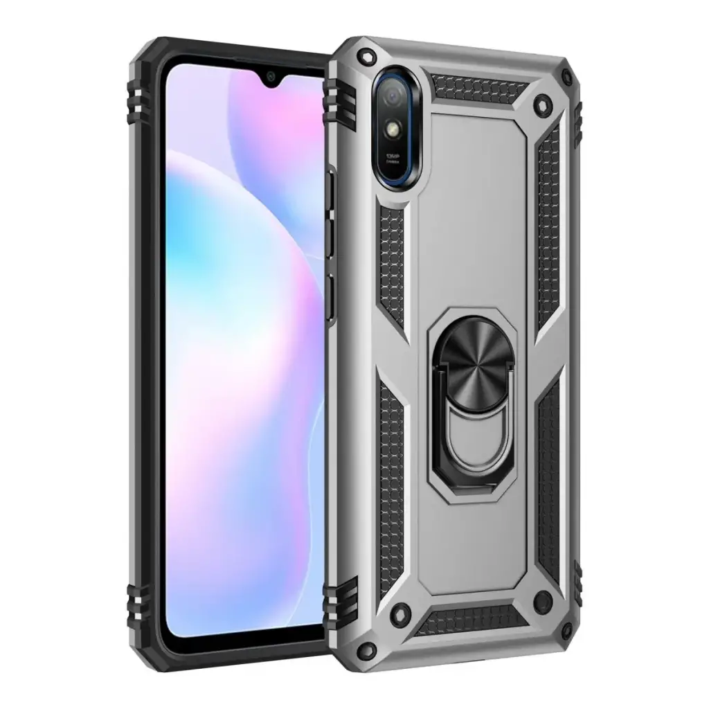 Newface Xiaomi Redmi 9A Kılıf Sofya Yüzüklü Silikon Kapak - Gümüş