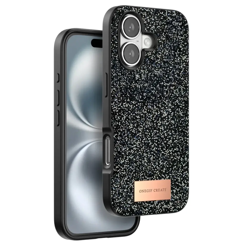 Onegif iPhone 16 Plus Bright Simli Kapak - Siyah