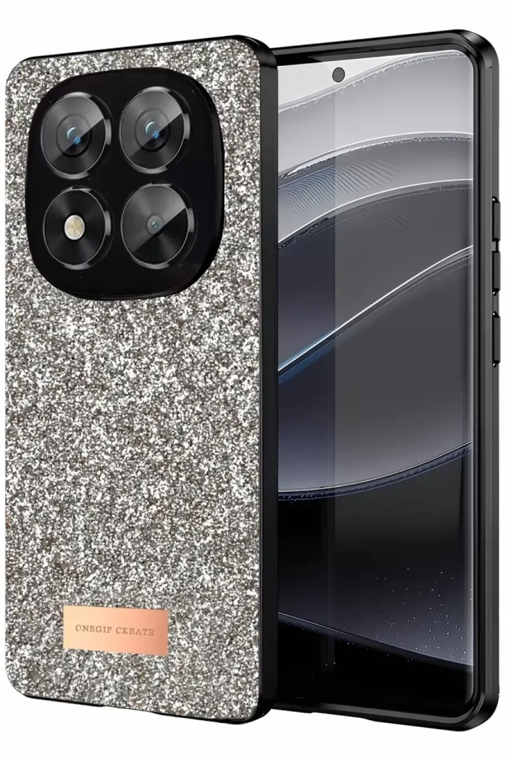 Onegif Xiaomi Redmi Note 14 Pro 5G Bright Simli Kapak - Gold