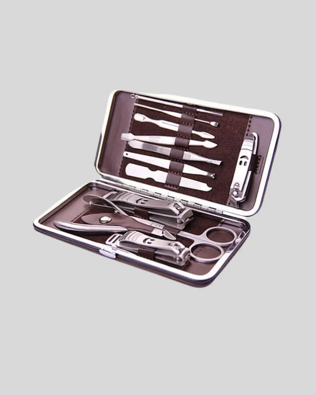 Günlük bakım alışkanlıklarınızı pratik hale getiren bu özel deri çantalı set, şık tasarımı ve işlevselliğiyle dikkat çeker. Paslanmaz çelik malzemeden üretilmiş parçaları hijyenik, dayanıklı ve uzun ömürlüdür. İçerisinde kulak çekme aparatı, çok amaçlı makas, manikür makası, üç farklı tırnak makası/düzeltici, pense, cımbız, törpü, manikür bıçağı, akne iğnesi ve kir temizleme aparatı gibi farklı araçlar yer almaktadır. Kompakt boyutu sayesinde çantanızda rahatlıkla taşıyabilirsiniz. Evde, işte ya da seyahatlerde kişisel bakımınızı zahmetsizce yapmanızı sağlar.