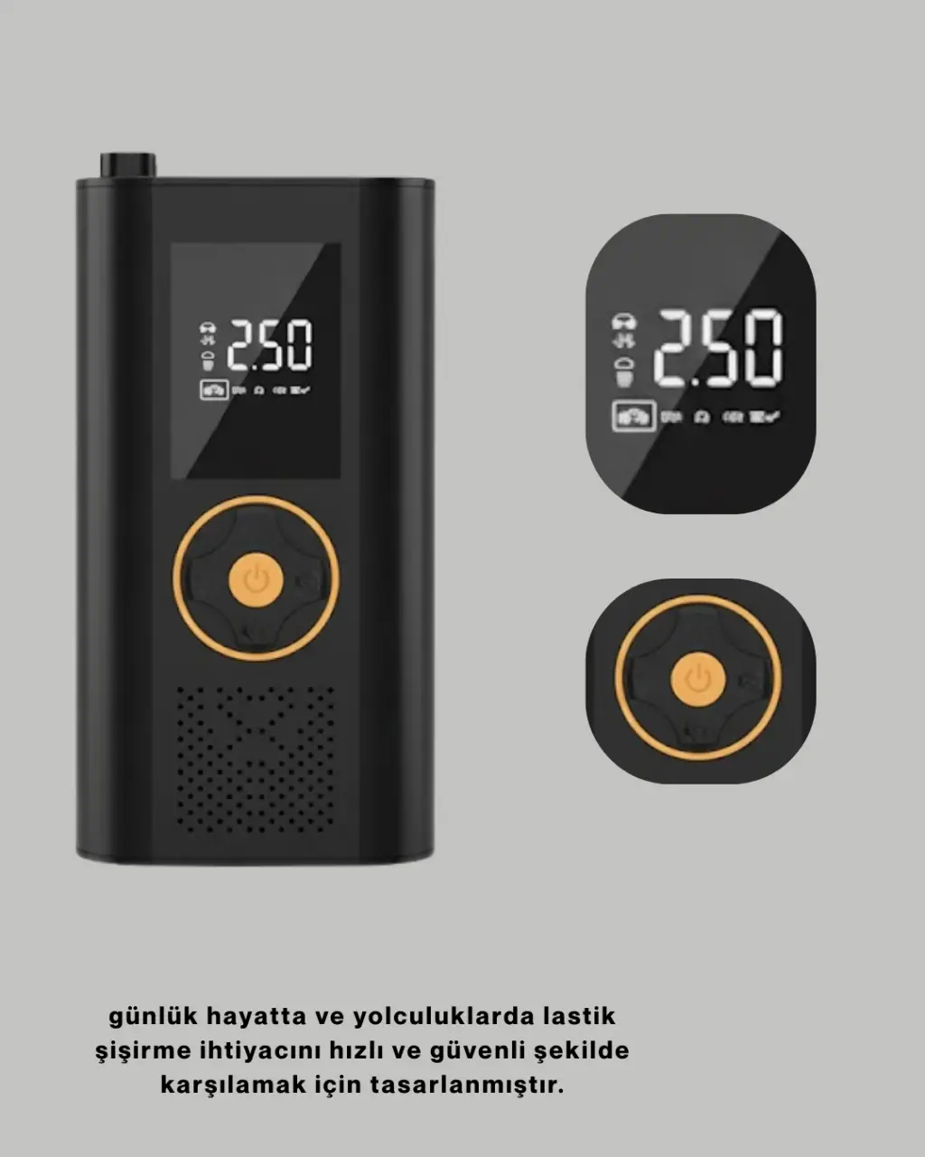 Şarjlı Dijital Hava Kompresörü, günlük ve acil ihtiyaçlar için pratik bir çözümdür. Otomatik durma, dijital ekran ve güçlü motor özellikleriyle güvenli kullanım sunar. Taşınabilir tasarımı sayesinde her yere kolayca götürülebilir. Çok amaçlı kullanım desteği ile ev ve araç kullanımına uygundur. Dayanıklı gövdesi ve modern tasarımıyla uzun süreli performans sağlar. Lastik bakımı ve güvenli sürüş için ideal bir yardımcıdır.